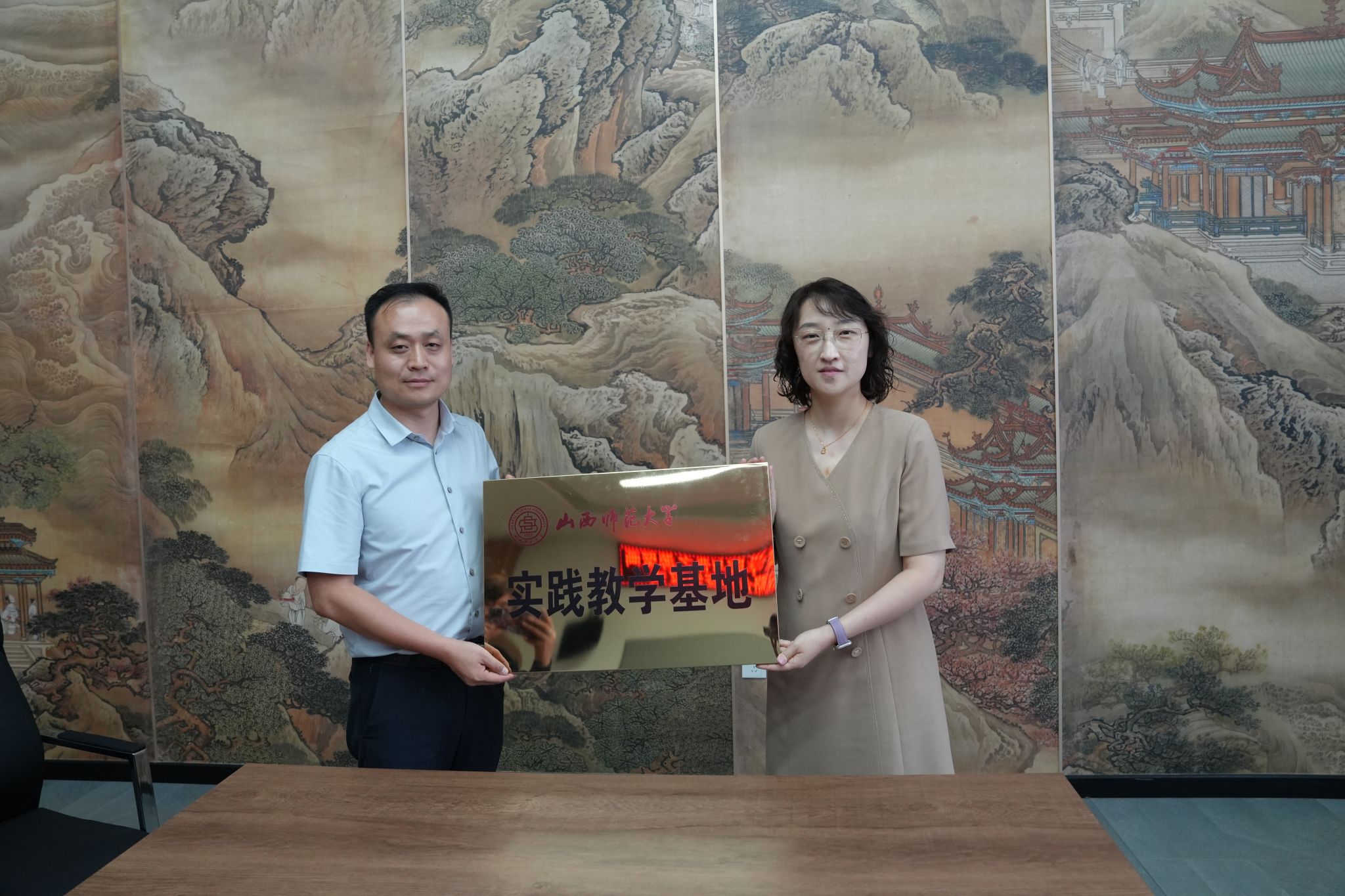 山西晋之源壁画博物馆常务副馆长赵鑫主持签约仪式,并与院长周婧就战略合作协议的相关内容进行了进一步沟通交流。随后,双方签订战略合作协议、专业实习协议,并进行授牌。