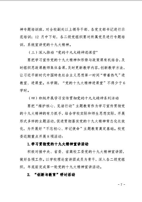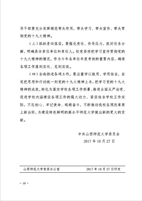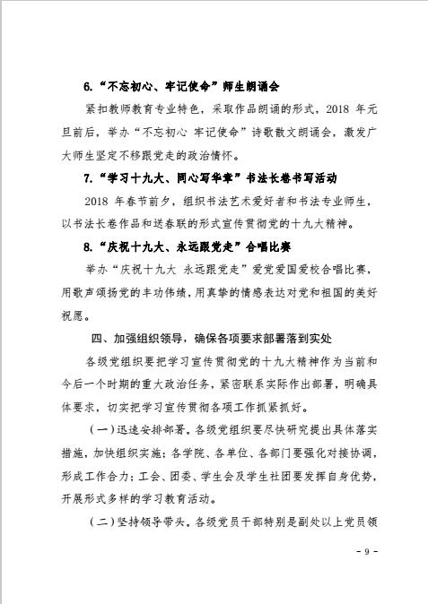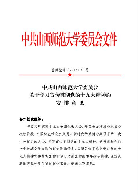 中共威尼斯7798cc委员会关于学习宣传贯彻党的十九大精神的安排意见