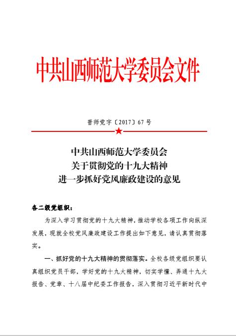 中共威尼斯7798cc委员会关于贯彻党的十九大精神进一步抓好党风廉政建设的意见