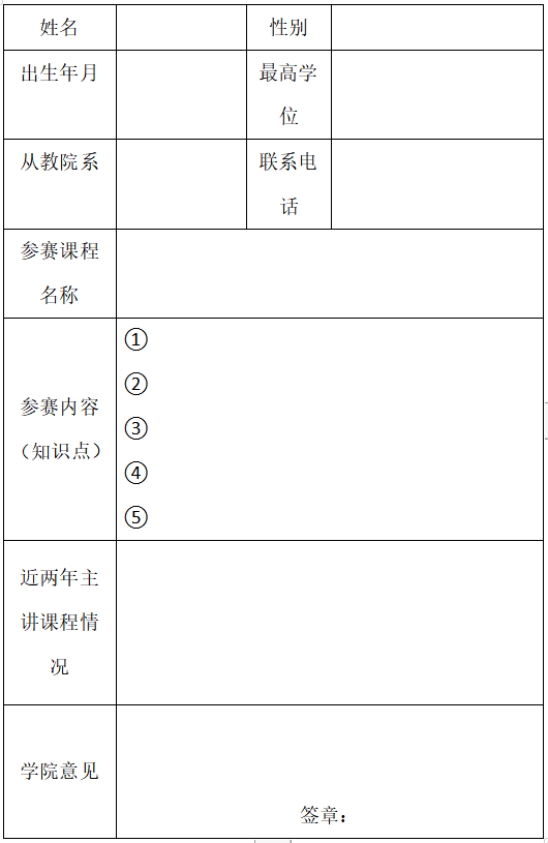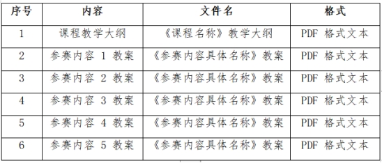 2. 参赛教师应准备参赛课程大纲和5个知识点的教案