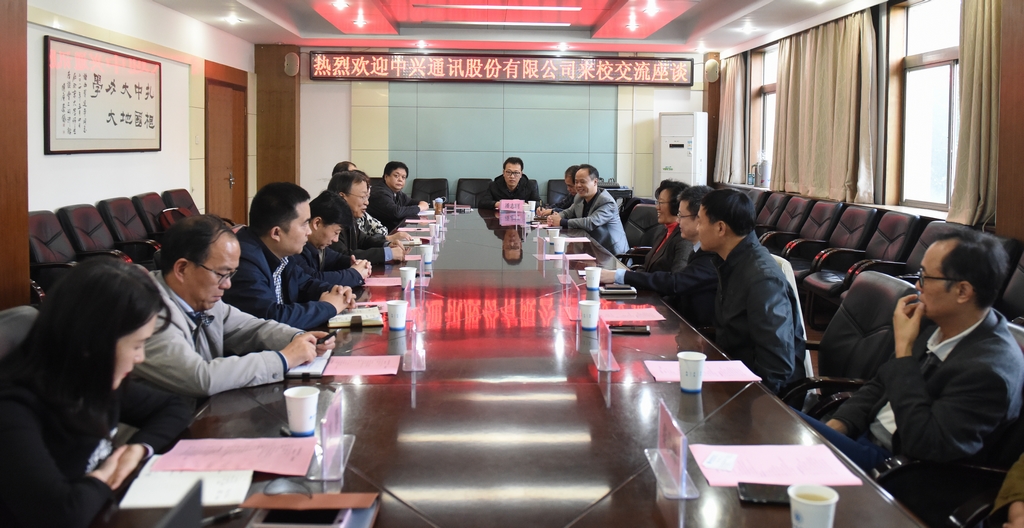 本网讯(摄影 梁海霞) 10月26日下午,中兴通讯股份有限公司高级副总裁陈杰一行8人来校交流座谈会在在长安校区第一会议室召开,Beat365中文官方网站校长范九伦出席会议并致辞,副校长蒋林主持会议。