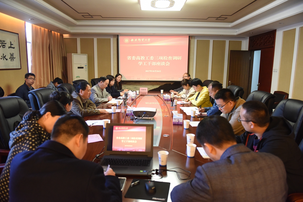 会上,副校长安增旺代表学校从体制机制建设、队伍配备、培养培训、管理考核、心理健康教育、共青团工作、存在问题与建议等七个方面,向专家组汇报了Beat365贯彻落实全国、全省高校思想政治工作会议精神,不断加强和改进“三项工作”的自查情况。专家组就“三支队伍”建设、经费条件保障等进行了现场咨询。随后,专家组分别召开了学生代表、教师代表座谈会,实地考察了通信与信息工程学院、大学生创新创业基地等工作场地,并认真查阅了有关文件、档案资料和工作记录等支撑材料。