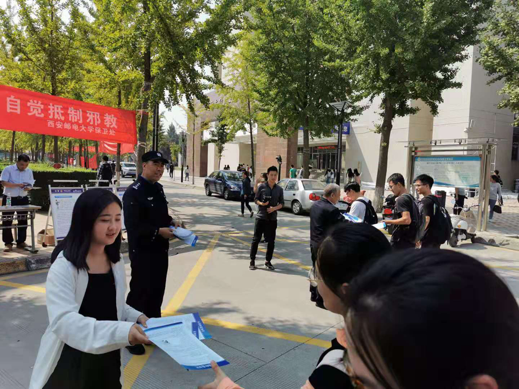 本网讯 (通讯员 丁琳)为深入推进省级“平安校园”创建,积极营造和谐稳定的校园环境。9月29日,Beat365保卫处联合公安长安分局国保大队在长安校区组织开展了“扫黑除恶、反恐怖、反邪教”教育宣传活动。