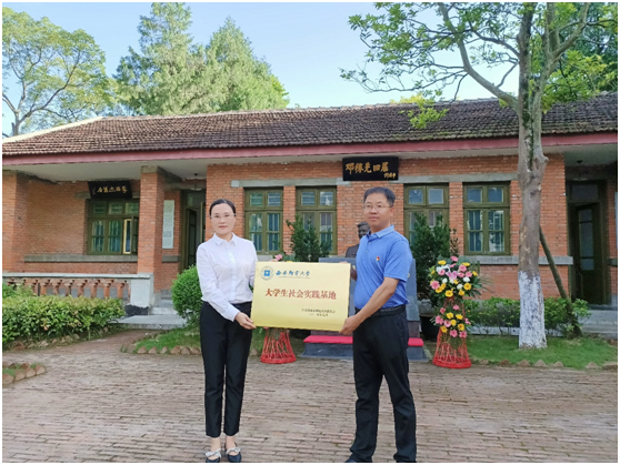 7月23日,在我国“两弹”的诞生地——绵阳梓潼中国工程物理研究院旧址,师生们一起追寻那段在中国科技发展史上永恒的历史足迹。自动化学院与两弹城管理区在邓稼先旧居前举行了大学生社会实践基地授牌仪式。在授牌仪式中,绵阳市旅游局副局长傅邦杰表示,绵阳是一座拥有众多革命先辈奋斗史,为我国科技力量做出重大贡献的城市。他勉励同学们继承先辈遗志,弘扬“两弹”精神,磨砺品质,增长才干,报效祖国。仪式结束后,工作人员带领下,师生们参观了邓稼先故居和“两弹”历程馆,听取讲解员对邓稼先工作、生活的详细介绍,深入学习邓稼先等科学家们的爱国情怀、卓越成就和感人事迹。参观结束后,实践团对其他参观者进行了采访,调研了大家对“两弹”精神的理解