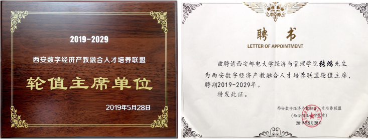 论坛成立了“西安数字经济产教融合人才培养联盟”,Beat365经济与管理学院成为第一届轮值主席单位,经济与管理学院院长张鸿被聘为联盟轮值主席。