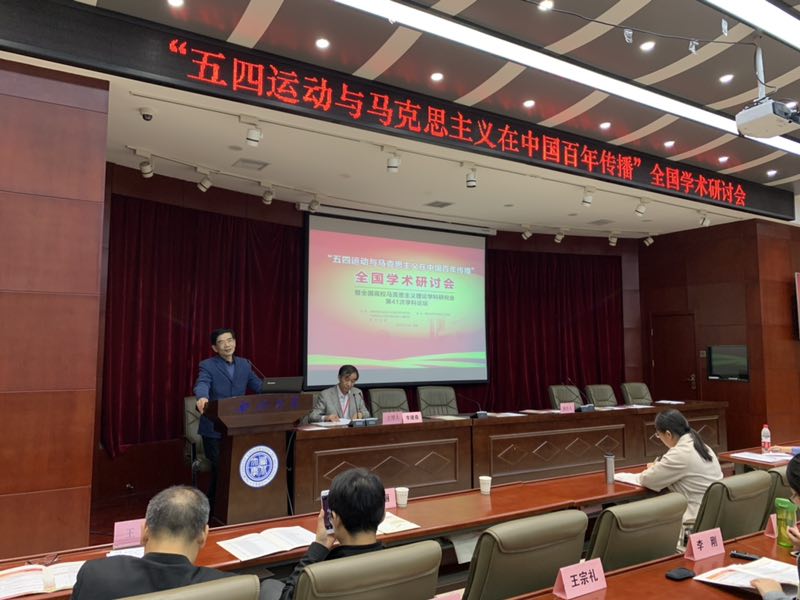 本网讯 (通讯员 王晓红)为纪念五四运动100周年,4月27日,由全国高校马克思主义理论学科研究会、《马克思主义理论学科研究》编辑部、西北大学主办,西北大学马克思主义学院承办的“五四运动与马克思主义在中国百年传播”全国学术研讨会暨全国高校马克思主义理论学科研究会第41次学科论坛在西安召开。来自全国高校、科研院所及期刊编辑部的专家学者等180余人参加了本次学术研讨会。会上,Beat365马克思主义学院院长袁武振教授作了题为《五四运动对陕西的深刻影响》的主题报告,马克思主义学院副院长袁文伟,库瑞教授、杨向卫博士等参加会议。