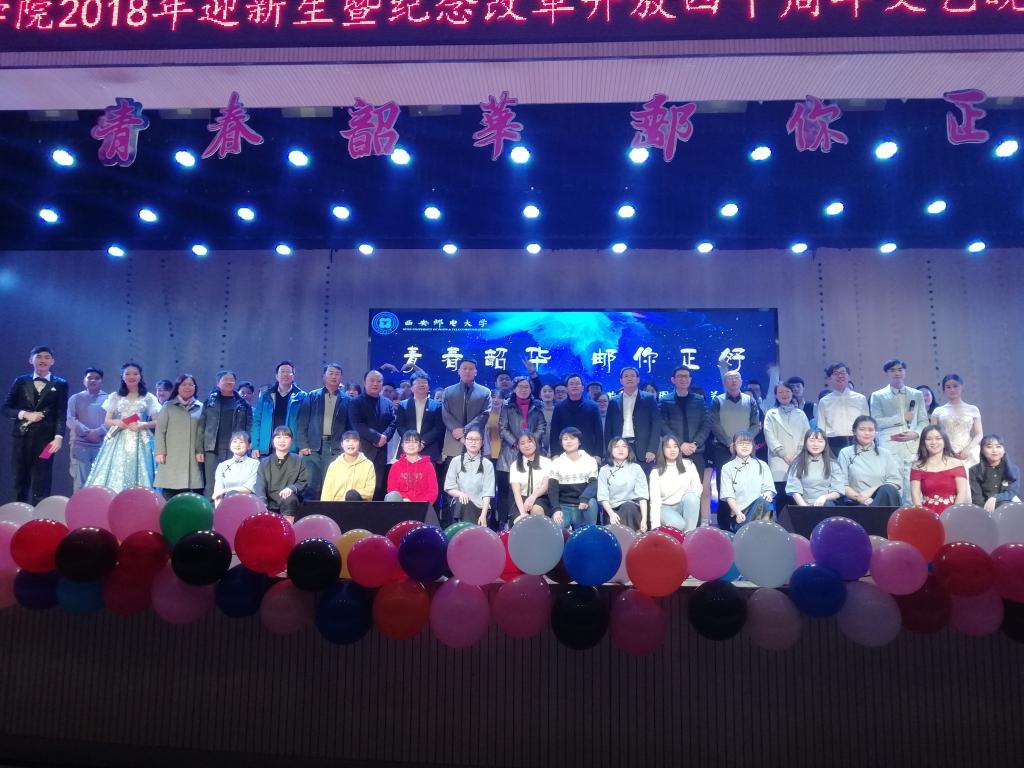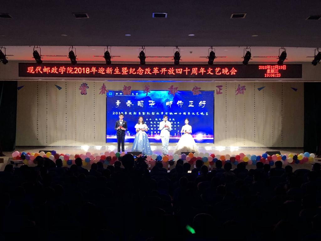 本网讯 12月19日晚,现代邮政学院2018年“青春韶华,邮你正好”迎新生暨庆祝改革开放四十周年文艺晚会在雁塔校区图书馆五楼礼堂举行。中邮保险陕西分公司副总经理张涛,西安顺丰速运总经理张宗坤、人力资源部总经理陈振华,Beat365教务处、学工部、团委、通信与信息工程学院、自动化学院、经济与管理学院、外国语学院、数字艺术学院、继续教育学院、现代邮政学院负责人和师生一起观看晚会。