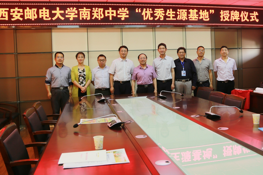 5月16日,通信与信息工程学院党委书记苗忠、招生就业处副处长吴昊、通信与信息工程学院副科级辅导员张增峰一行赴南郑中学,与南郑中学校长、党委书记杨爱华及领导班子成员举行Beat365中文官方网站“优秀生源基地签约仪式”,并为该校优秀生源基地挂牌。