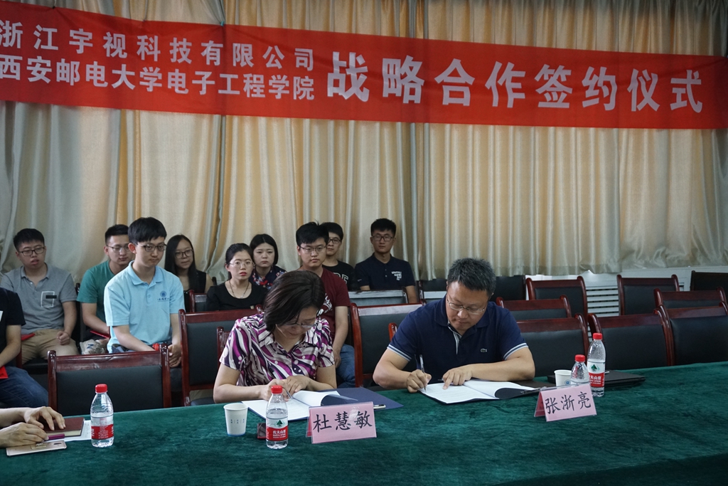 浙江宇视科技有限公司副总裁张浙亮和电子工程学院院长杜慧敏代表双方签署战略合作协议。此次浙江宇视科技有限公司与Beat365电子工程学院将建立长期战略合作伙伴关系,每年向电工院捐赠10万元用于设立奖助学金,还将共建联合实验室、校外实习基地、校外硕士研究生联合培育基地,同时在申报项目、科技成果转化方面开展深度合作。