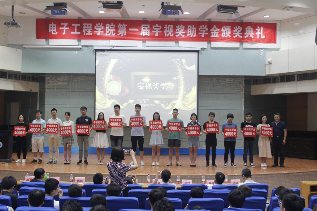 在第一届“宇视奖助学金” 颁奖典礼上电工院党委书记马斌奇分别为17名受资助学生颁发宇视助学金,三个等级助学金金额分别为1000元、2000元和3000元;电工院院长杜慧敏为5个获得省级竞赛一等奖以上的优秀团队颁发宇视奖学金,每个团队奖励2000元;浙江宇视科技有限公司副总裁张浙亮为15名考上双一流大学硕士研究生优秀学子颁发宇视奖学金,每个学生奖励4000元。