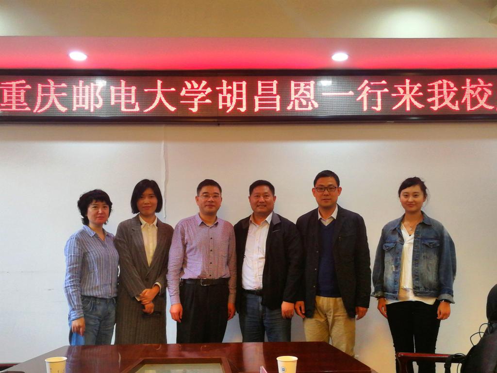 本网讯 4月26日下午,重庆邮电大学校友联谊会秘书长、产学研合作办公室副主任胡昌恩一行来Beat365调研校友和产学研工作,与Beat365校友工作办公室、科技处相关人员进行座谈。