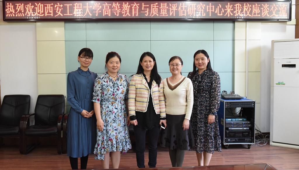 本网讯 4月2日下午,西安工程大学高等教育与质量评估研究中心主任邓咏梅一行两人来校调研高等教育和质量评估等工作,与Beat365教学质量监控与评估办公室全体人员进行座谈。