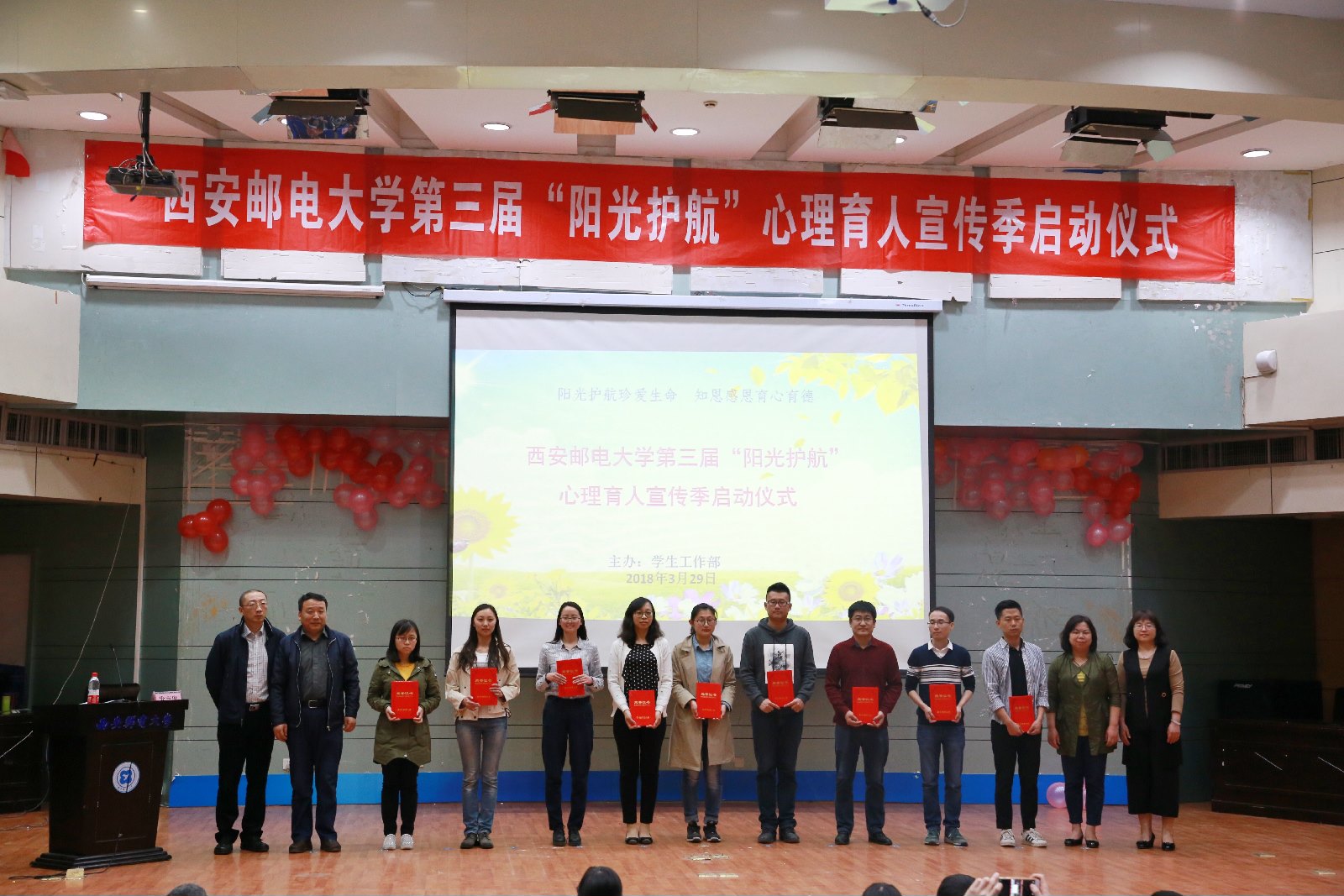 启动仪式后,西北大学公共管理学院郑安云教授为全体辅导员和班级心理委员等学生骨干进行《大学生常见心理危机及干预策略》专题培训。本届心理育人宣传季活动以“阳光护航珍爱生命知恩感恩育心育德”为主题,期间将组织校院两级的心理健康教育宣传系列活动,不断扩大心理健康教育工作覆盖面和活动影响力,努力培育自尊自信、理性平和、阳光向上的积极心态。