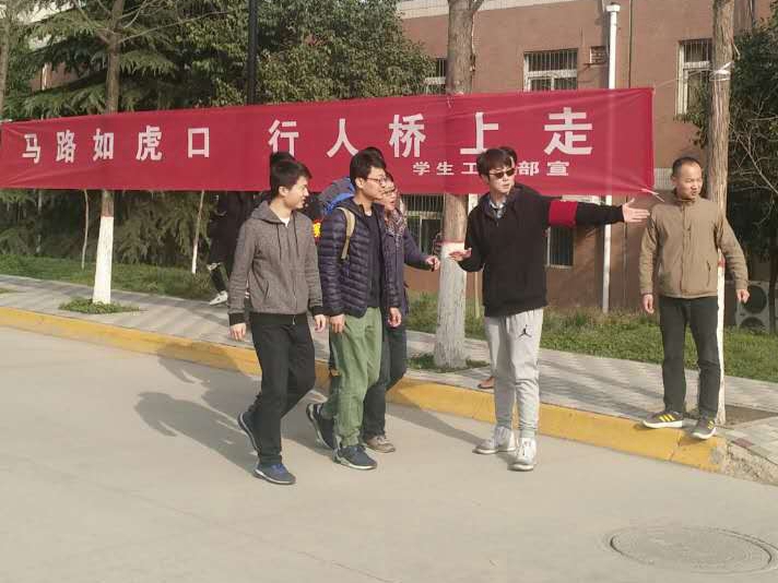 学生工作部在校园醒目位置设立安全警示标语,组织各学院在东西校区门口等横穿马路现象频发的地点进行现场督导,及时劝阻和纠正学生横穿马路现象。各学院通过主题班会教育,提醒广大学生遵守交通法规,珍爱生命。通过一系列活动,学生交通安全意识明显提升,横穿马路现象显著改善。