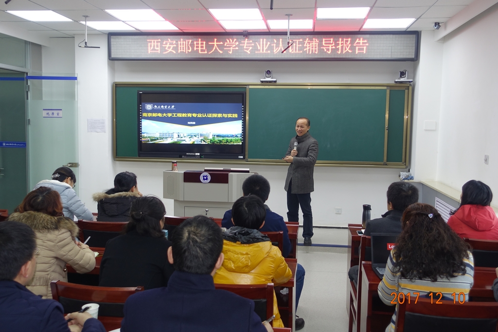本网讯 12月10日,教师发展中心、教学质量监控与评估办公室在长安校区东区举办工程教育认证专题辅导报告,南京邮电大学教务处副处长刘芫健教授受邀主讲。各相关学院院长、教学副院长、专业负责人、系部主任、实验室主任及部分专业主干课程任课教师参加报告会。
