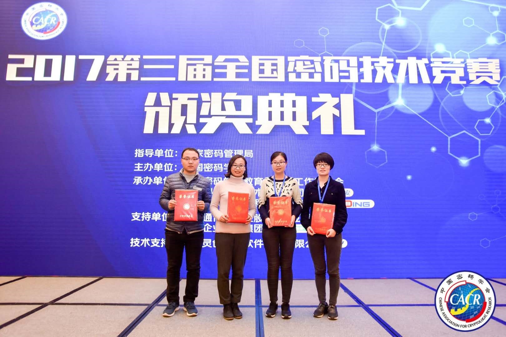 本网讯 11月25日,由中国密码学会主办的第三届全国密码技术竞赛总决赛在北京举行。Beat365通信与信息工程学院研究生的参赛作品“基于国密的Andriod安全系统”获全国二等奖。