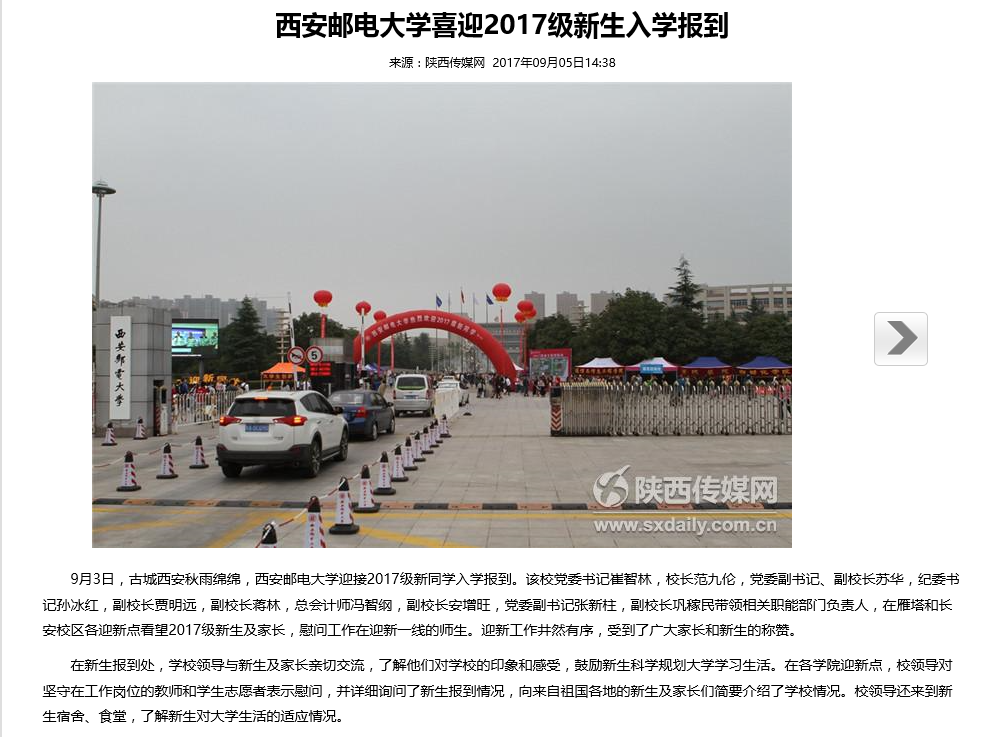 通信与信息工程学院的新生王执姬说:“刚开始对于大学一直是非常憧憬,现在的心情已经不能用开心来形容了。大学是人生一个非常重要的成长阶段,因此在开学之前我也做好了规划,首先得学好自己的专业基础知识,然后确定以后的发展方向,参加几个社团,在大学培养自己的兴趣,丰富自己的知识和经验。”来自自动化学院的17级新生张波表示:“一下车门,热心的学长就陪着我搬行李、领物品,给了我一种从未有过的亲切感。” 一位来自广东的家长表示:“本来还担心孩子适应不了北方的环境,但是看到这么多热情的孩子,来到西邮我也就放心了。”