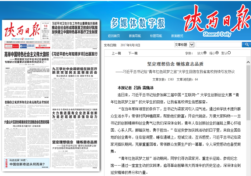 “总书记的回信让我们这个年轻的创业团队备受鼓舞!”西北农林科技大学水建学院蔡仕彪同学说,“此次在延安的‘青年红色筑梦之旅’让我们受到深刻洗礼。我们要在创新创业中增长智慧才干,在艰苦奋斗中锻炼成长,脚踏实地,为祖国发展贡献自己的力量,为宏伟的中国梦添砖加瓦!”