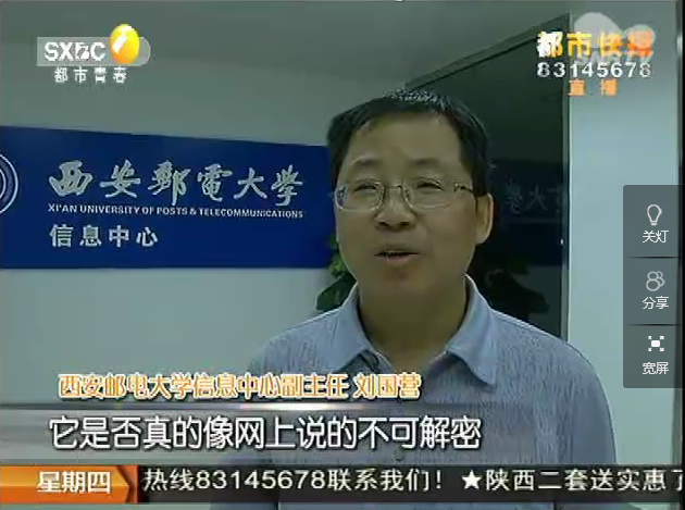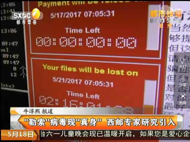2017年5月18日陕西电视台《都市快报》:“勒索”病毒“真身”现西安 西邮专家为研究引入