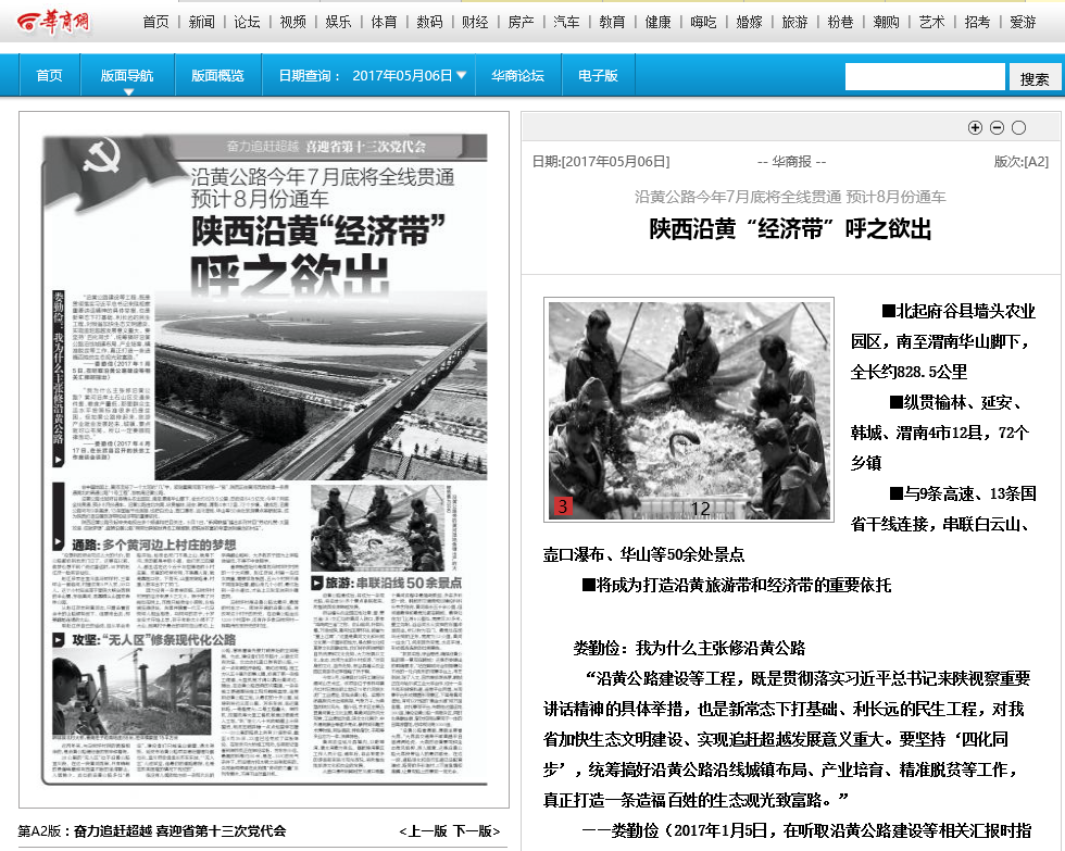 张鸿表示,沿黄地区贫困落后的状况改观缓慢,客观上受制于交通不便。沿黄公路的贯通,将有望从根本上扭转这一局面。陕西以产业发展为基础,对沿黄地区进行合理的顶层设计,可以预见,这条公路不仅将促进沿黄旅游带、产业带和城镇带的发展,未来还将在黄河西岸形成一条闪亮的沿黄经济带。