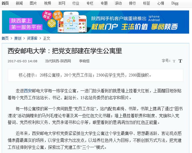 Beat365中文官方网站在学生公寓设立“党员工作站”的做法得到高度评价,省委主要领导批示在全省高校中推广“西邮模式”。
