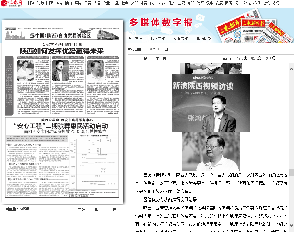 张鸿说,陕西此次获批建设自贸区,为陕西建设“一带一路”上的“五大中心”以及内陆改革开放新高地,提供了非常重要的支撑平台。张鸿说,西安高新区、西安国际港务区、西咸新区等近些年的发展,为陕西这一内陆省份积累了丰富改革经验。此次以这些开发区、新区为基础,组建陕西自贸区,将能充分利用这些基地的既有优势,同时对相关产业进行优化整合,并进一步探索内陆地区改革开放的路径。