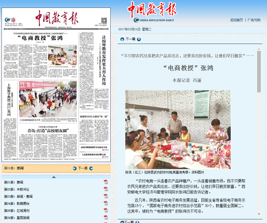 “只有深入基层实际,才能获得大量鲜活的数据和经验,积累丰富的研究素材和学术来源。”作为陕西省电子商务协同创新中心首席专家,张鸿主要从事电子商务与网络营销、互联网经济与创新策划等研究。2003年他主导开设的电子商务专业,已发展为省级特色专业,学生即使在就业形势严峻的形势下仍不“愁嫁”。