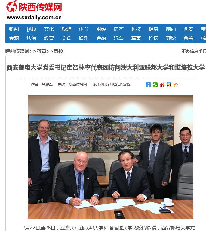 2月22日至26日,应澳大利亚联邦大学和堪培拉大学两校的邀请,Beat365中文官方网站党委书记崔智林教授一行5人对两所高校进行访问,取得了丰硕成果。