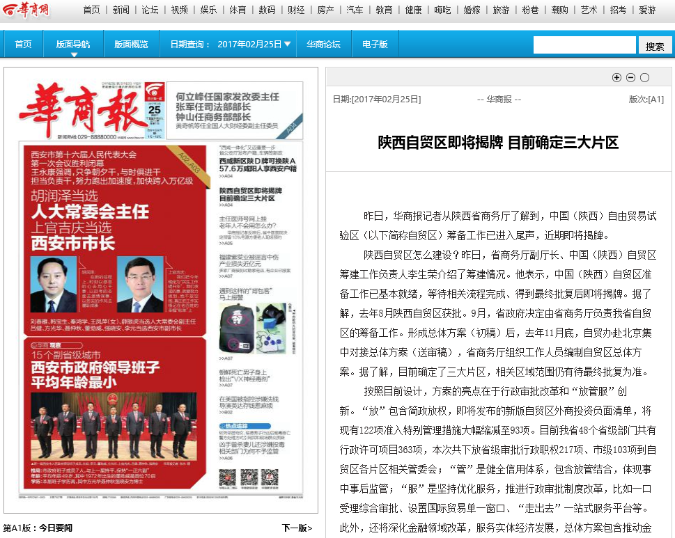 陕西自贸区怎么建设?昨日,省商务厅副厅长、中国(陕西)自贸区筹建工作负责人李生荣介绍了筹建情况。他表示,中国(陕西)自贸区准备工作已基本就绪,等待相关流程完成、得到最终批复后即将揭牌。据了解,去年8月陕西自贸区获批。9月,省政府决定由省商务厅负责我省自贸区的筹备工作。形成总体方案(初稿)后,去年11月底,自贸办赴北京集中对接总体方案(送审稿),省商务厅组织工作人员编制自贸区总体方案。据了解,目前确定了三大片区,相关区域范围仍有待最终批复为准。