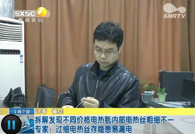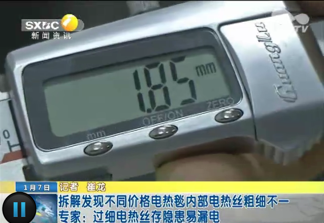 2016年1月7日,陕西电视台《第一新闻》栏目报道:拆解发现不同价格电热毯内部电热丝粗细不一 专家:过细电热丝存隐患易漏电