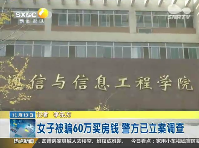 2016年11月13日陕西电视台《第一新闻》:女子遭遇连环骗 60万买房钱被骗