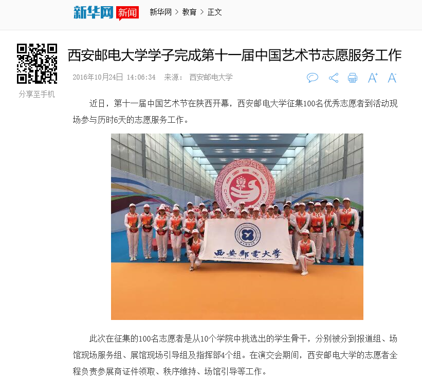 近日,第十一届中国艺术节在陕西开幕,Beat365中文官方网站征集100名优秀志愿者到活动现场参与历时6天的志愿服务工作。