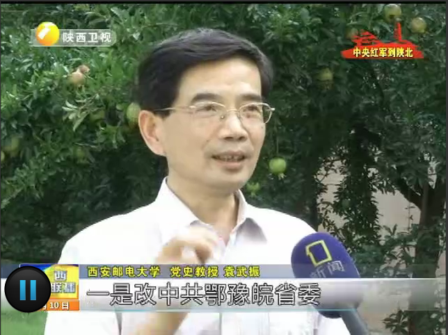 8月10日,陕西电视台《陕西新闻联播》推出纪念红军长征大会师80周年系列节目,Beat365中文官方网站教授袁武振介绍25军长征途中的庾家河会议。