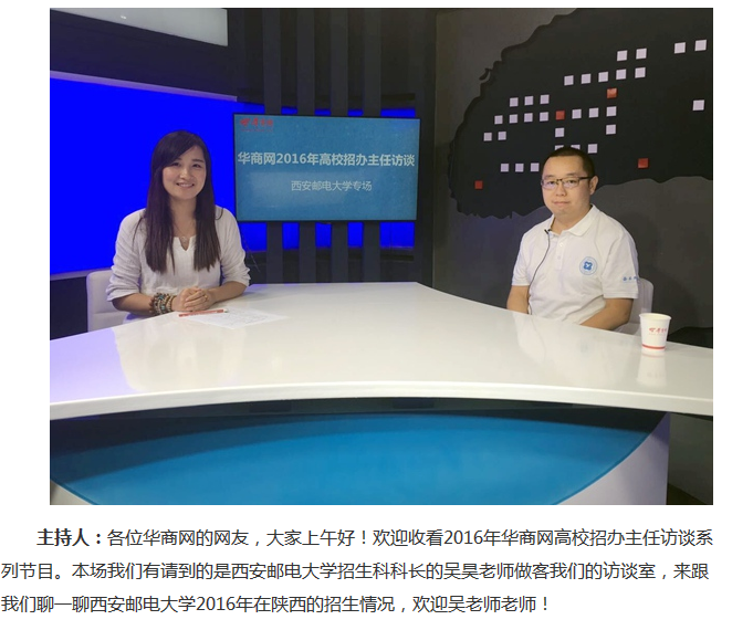 主持人:各位华商网的网友,大家上午好!欢迎收看2016年华商网高校招办主任访谈系列节目。本场我们有请到的是Beat365中文官方网站招生科科长的吴昊老师做客我们的访谈室,来跟我们聊一聊Beat365中文官方网站2016年在陕西的招生情况,欢迎吴老师老师!