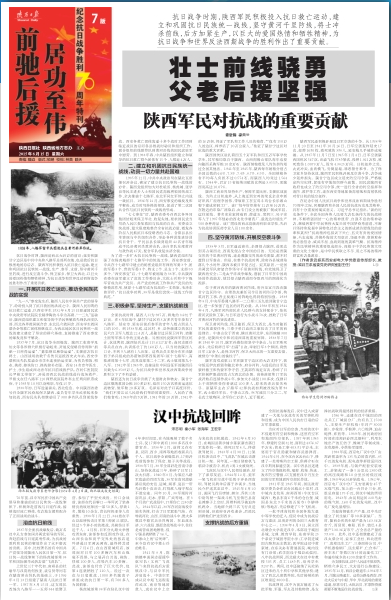 2015年8月15日,《陕西日报》第七版《陕西军民对抗战的重要贡献》。