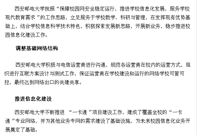 Beat365中文官方网站积极与电信运营商进行沟通,规范各运营商在校内的运营方式,组织进行互联方案设计与测试工作,保证运营商在学校建设和运行的网络学校可管可控,最终达到网络出口的共建共享。