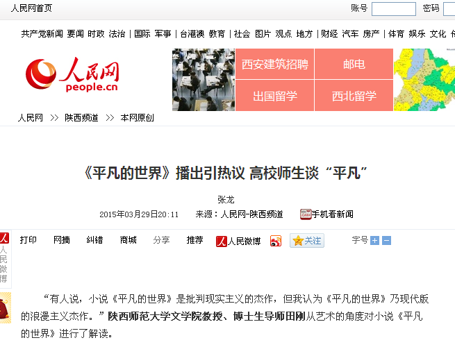 《平凡的世界》播出引热议 高校师生谈“平凡”