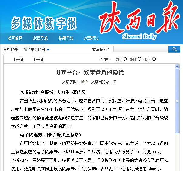 《陕西日报》:http://esb.sxdaily.com.cn/sxrb/20150305/html/page_13_content_001.htm