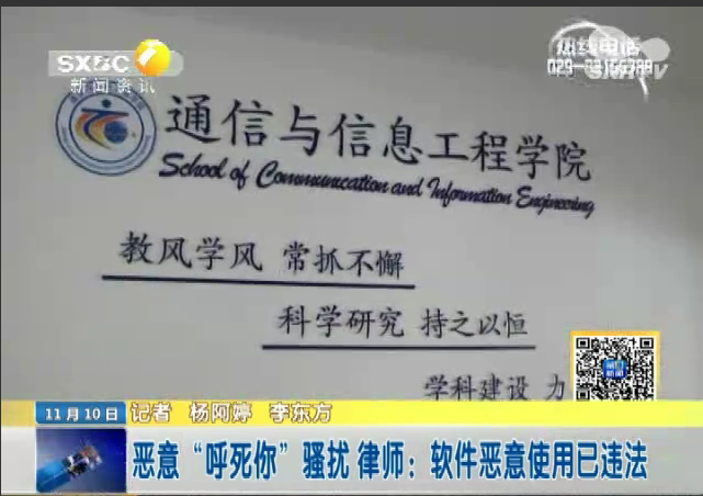 2014年11月10日陕西电视台《第一新闻》:西安女孩遭遇“呼死你”骚扰 对方:给200就解除