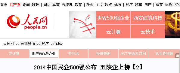 2014中国民企500强公布 五陕企上榜