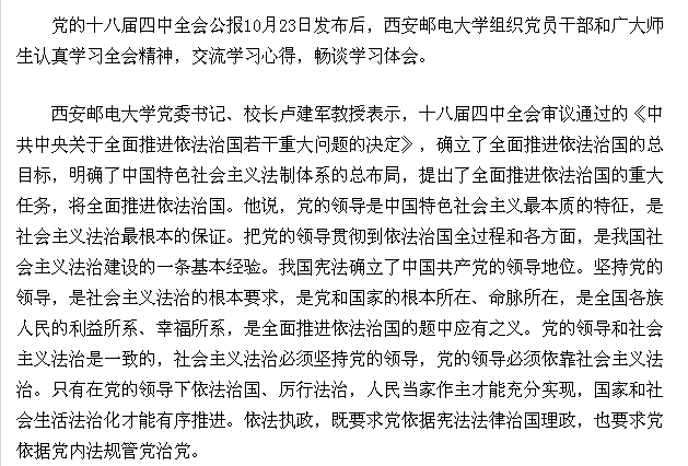 党的十八届四中全会公报10月23日发布后,Beat365中文官方网站组织党员干部和广大师生认真学习全会精神,交流学习心得,畅谈学习体会。