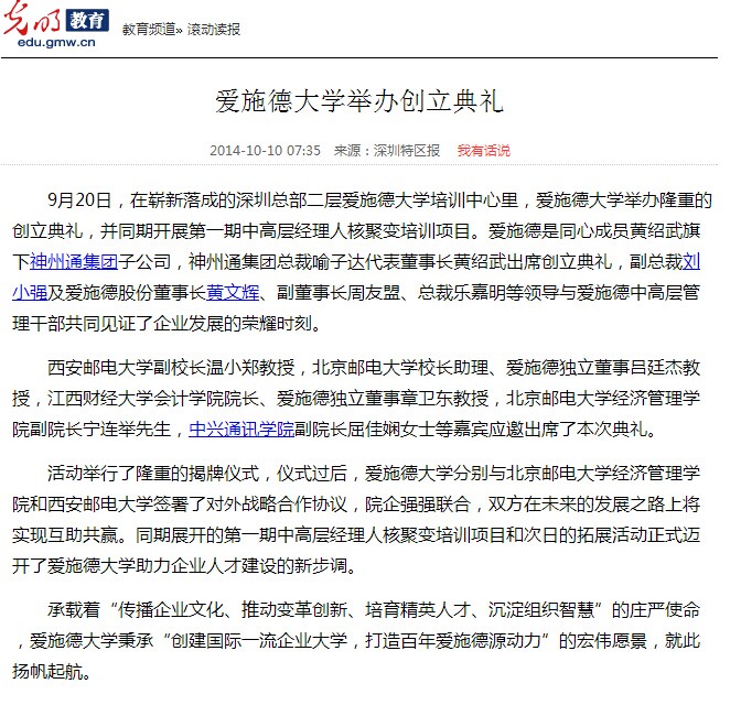 爱施德大学举办创立典礼