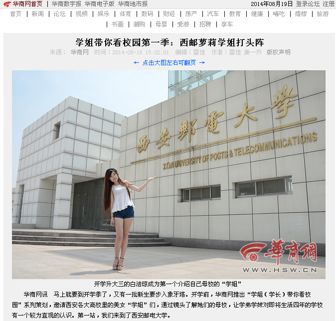 华商网讯 马上就要到开学季了,又有一批新生要步入象牙塔。开学前,华商网推出“学姐(学长)带你看校园”系列策划,邀请西安各大高校里的美女“学姐”们,通过镜头了解她们的母校,让学弟学妹对即将生活四年的学校有一个较为直观的认识。第一站,我们来到了Beat365中文官方网站。