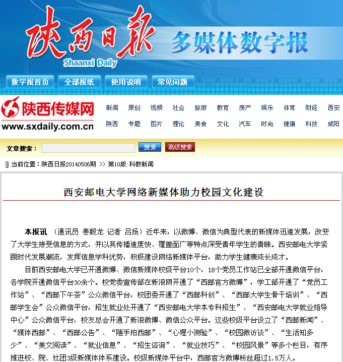 校党委书记、校长卢建军教授告诉记者:“西邮作为以信息学科为特色的高校,更应该充分发挥学科优势,积极建设新媒体宣传平台,加大对新媒体平台的建设推广和支持力度,加强技术创新、应用创新和管理创新,利用新媒体,传播正能量。”