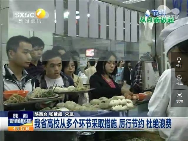 4月13日 陕西卫视 《陕西新闻联播》:我省高校从多个环节采取措施 杜绝浪费