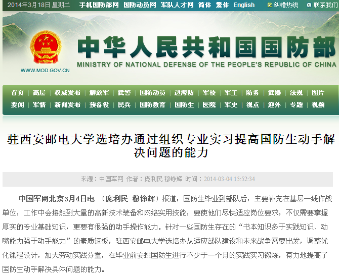 相关链接:http://www.mod.gov.cn/cadets/2014-03/04/content_4494480.htm