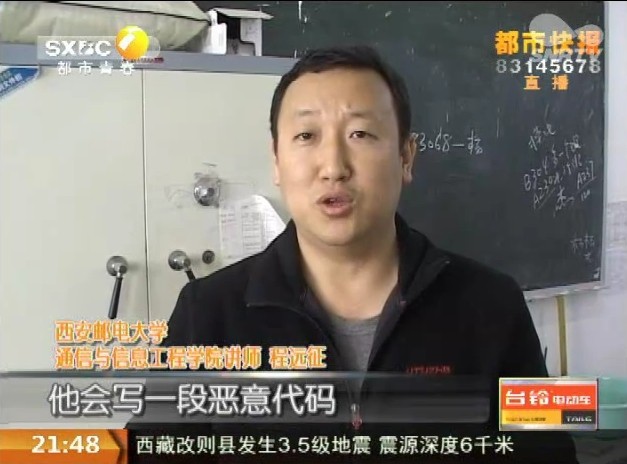3月1日 陕西电视台《青春频道》:无线网络有风险 当心路由器被“劫持” 相关链接:http://www.snrtv.com/content/2014-03/01/content_10805608.htm#